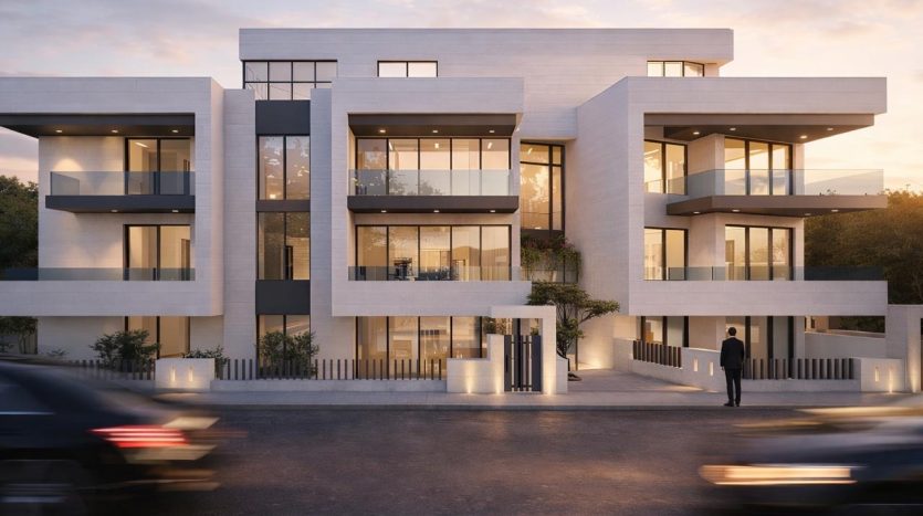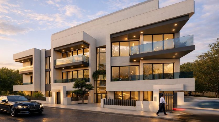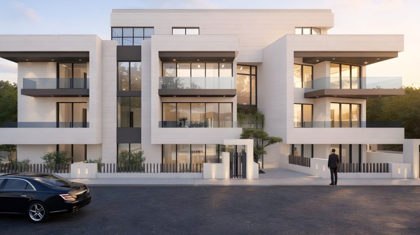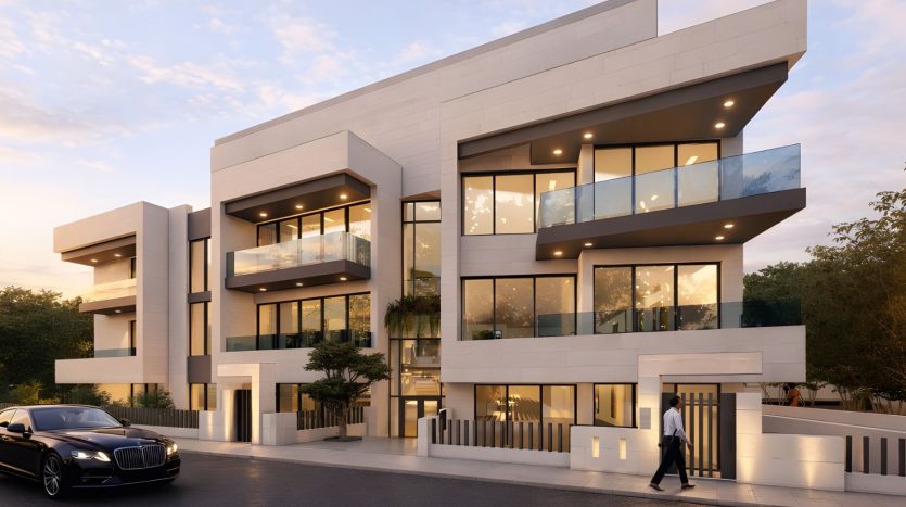 The Four-story project boasts a selection of seven spacious and modern four bedroom apartments; Each of the apartments includes an en-suite master bathroom, while all the apartments have a covered parking space and storage room on the basement floor.